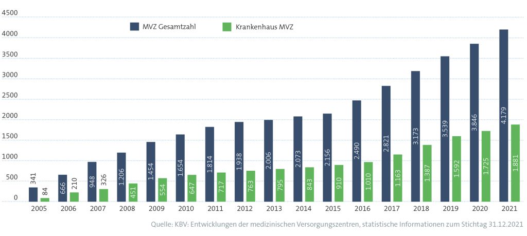 Anzahl MVZ (Gesamtzahl und Krankenhaus-MVZ)
