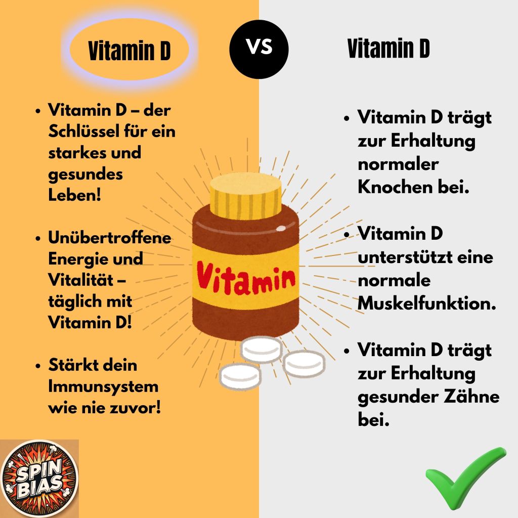 Darüber hinaus kann der Spin Bias möglicherweise auch Gesundheitsentscheidungen durch die Interpretation von Studienergebnissen beeinflussen, wenn beispielsweise Risiken nicht kommuniziert werden oder die Vorteile von Behandlungsoptionen übertrieben dargestellt werden [6], [7], [8], [9] (siehe Abbildung für ein fiktives Beispiel mit Gegenüberstellung).