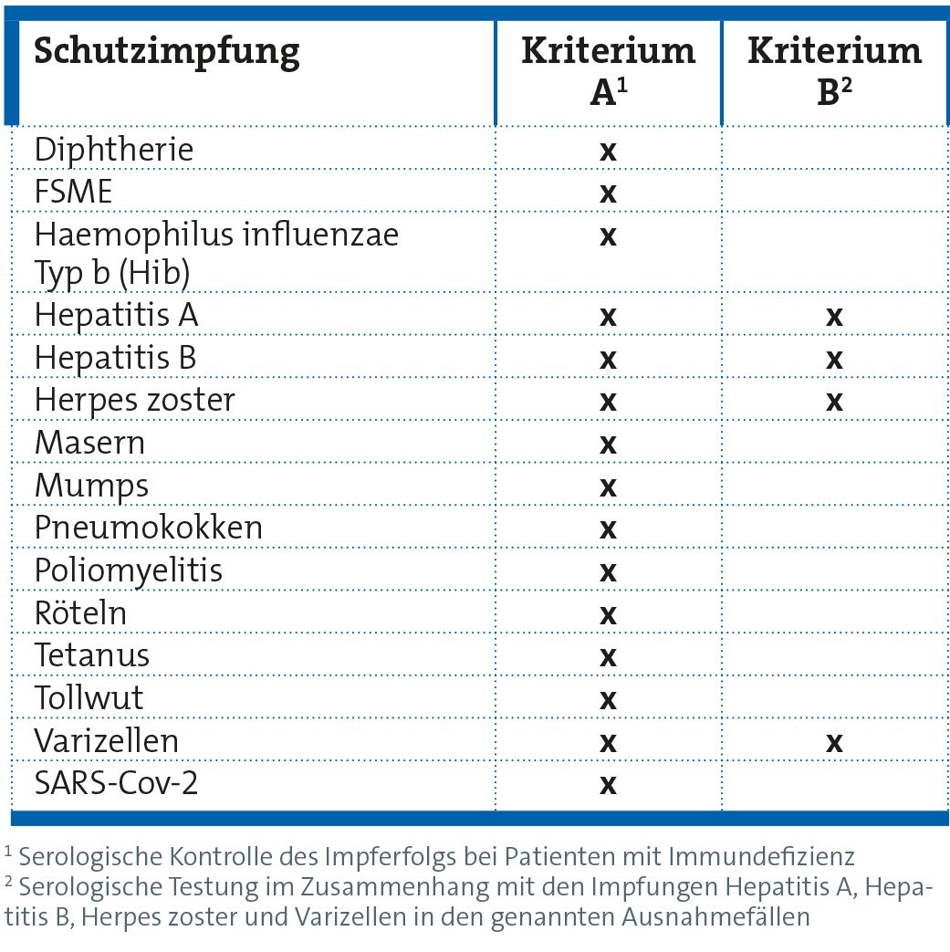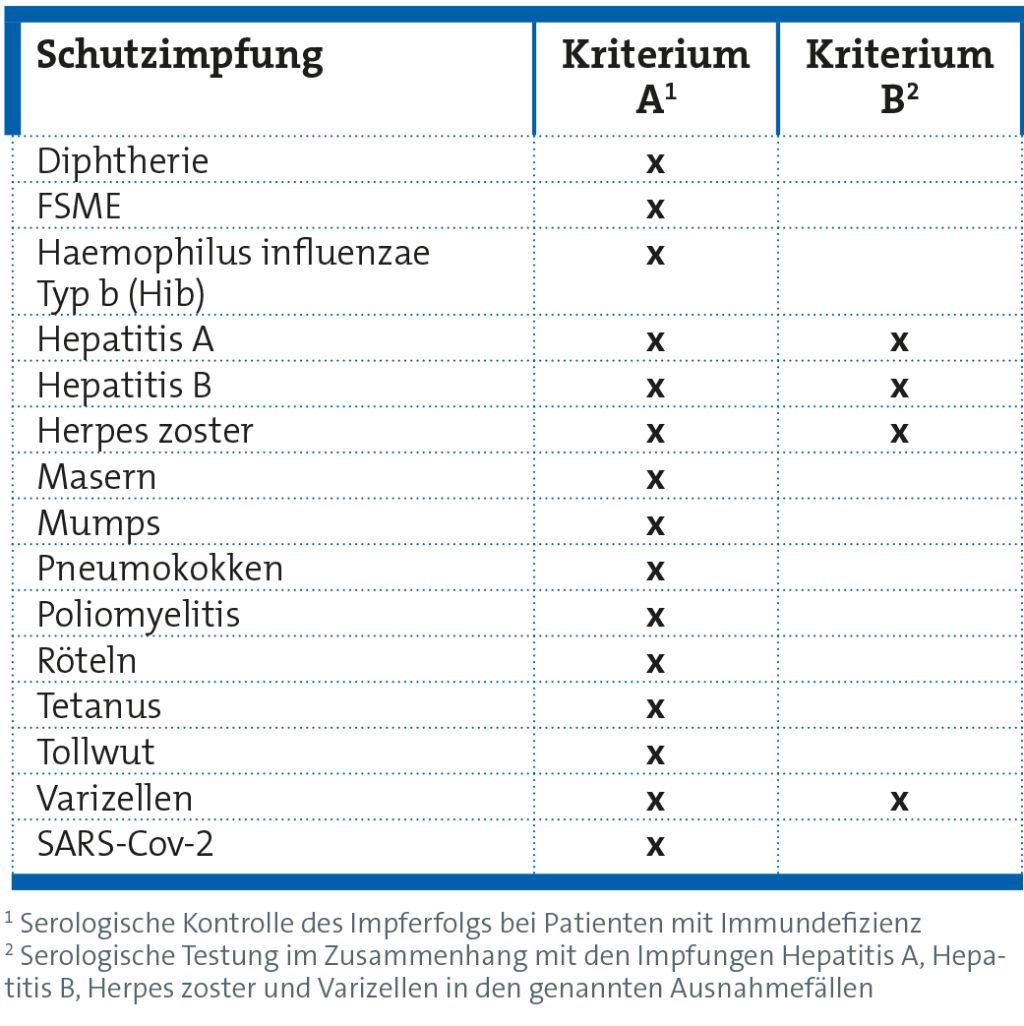 Serologische Kontrolle des Impferfolgs bei Patienten mit Immundefizienz (Kriterium A)