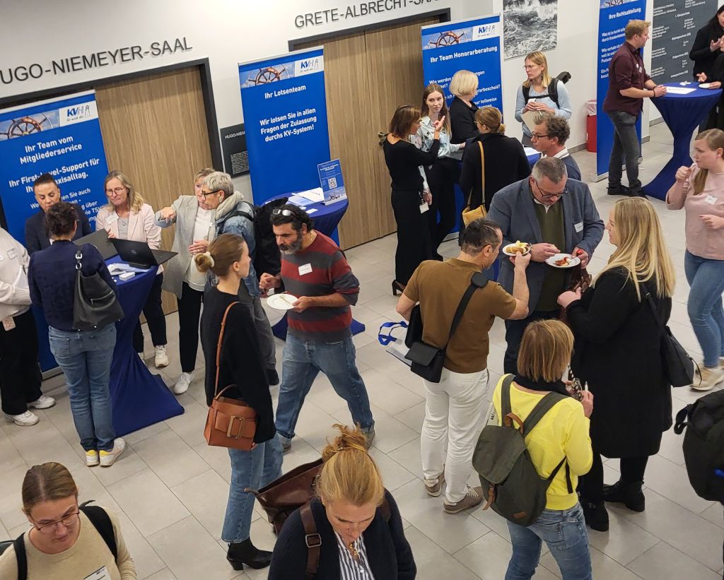 An die 60 Ärzt:innen und und Psychotherapeut:innen nahmen am 9. Oktober 2024 an der Veranstaltung „So gelingt der erfolgreiche Praxisstart“ im Gebäude der KV teil. In kurzen Vorträgen und an verschiedenen Infoständen erhielten die Teilnehmer einen ersten Überblick zu wichtigen Fragestellungen der vertragsärztlichen Versorgung: von Abrechnung über Genehmigung bis hin zu Verordnung und Qualitätssicherung.