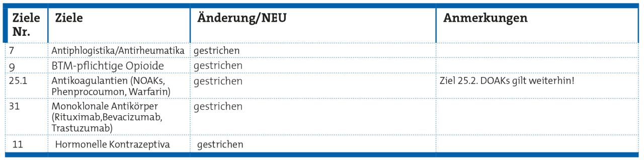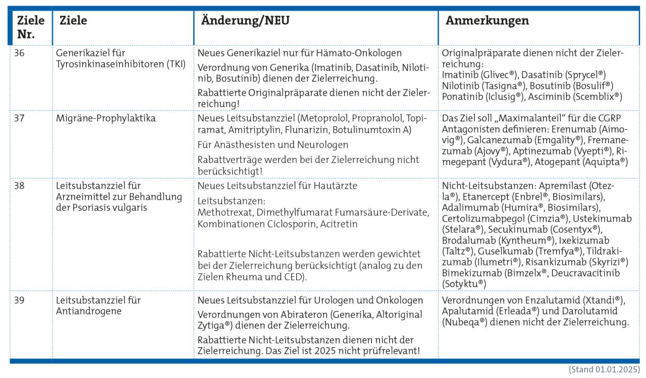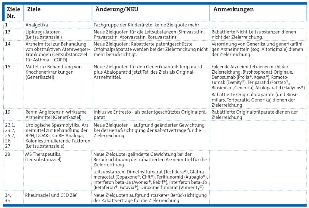Des Weiteren wurden vier neue Ziele eingeführt, die nur für einzelne fachärztliche Arztgruppen gelten.