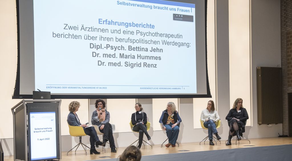 Um mehr Frauen für ein berufspolitisches Engagement in der KV Hamburg zu gewinnen, hat die neu gegründete Frauenkommission der KV Hamburg die Veranstaltungsreihe „Selbstverwaltung braucht uns Frauen“ ins Leben gerufen. Die hybride Auftaktveranstaltung fand am 7. April 2022 im Ärztehaus Hamburg statt und wurde von der stellvertretenden KV-Hamburg-Vorsitzenden Caroline Roos eröffnet: „Die Frauenkommission will erreichen, dass Frauen künftig eine größere Rolle spielen – in den Gremien, in der Vertreterversammlung, in der KV insgesamt. Ich unterstütze dieses Anliegen sehr und freue mich auf alles, was da kommen wird.“ Als Ehrengast wurde die Gesundheitssenatorin Dr. Melanie Leonhard online zugeschaltet, die in ihrer Ansprache die Teilnehmerinnen ermutigte, erste Schritte zu wagen und sich berufspolitisch zu engagieren: „Seien Sie mutig und furchtlos, wenn es darum geht, Aufgaben zum Wohle aller zu übernehmen. Mehr Frauen in der Selbstverwaltung sind gut für Hamburg und für die Versorgung der Stadt.“