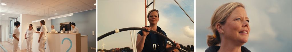 Die Kardiologin Müller nimmt die Betrachter mit auf einen Segeltörn. Während die Ärztin das Steuerruder fest in der Hand hält und mit ihrer Segel-Crew spricht, beschreibt ihre Stimme aus dem Off, wie wichtig Kooperation unter Ärzt:innen sowie generell im Gesundheitswesen ist. Sie sieht die Notwendigkeit, im Team zu arbeiten, als wesentlichen Bestandteil der Patientenversorgung an, sei es im eigenen Praxisteam oder praxisübergreifend in der hausärztlichen sowie stationären Versorgung.