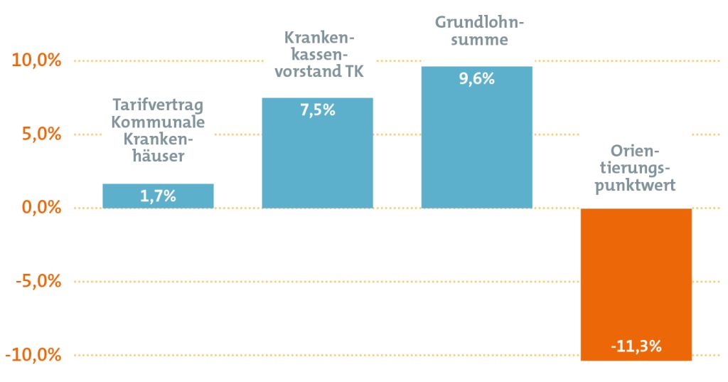 Ein Blick auf die Zahlen zeigt das Problem: Nominell ist der Orientierungspunktwert in zehn Jahren um 15,6 Prozent gestiegen. Die Inflation im selben Zeitraum lag jedoch bei 26,9 Prozent. Das bedeutet einen realen Honorarverlust von 11,3 Prozent.
